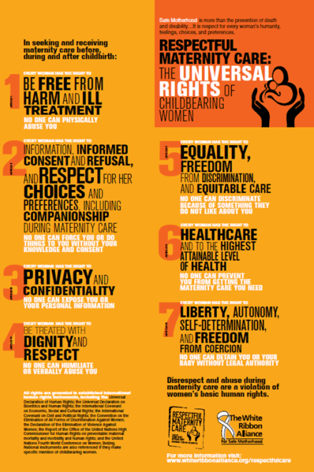 The White Ribbon Alliance for Safe Motherhood has created a Respectful Maternity Care charter that lays out the tenets of proper care all expectant mothers deserve whether they live in Detroit or Djibouti.