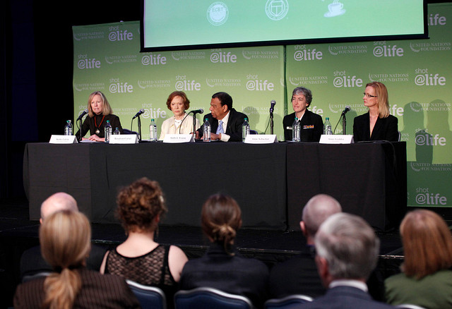 In an official launch ceremony Kathy Calvin, the CEO of the UN Foundation, moderated a panel of vaccine experts and advocates including First Lady Rosalynn Carter, CEO of Every Child by Two, Ambassador Andrew Young, Board Member of the UN Foundation, Dr. Anne Schuchat, Director of the National Center of Immunization and Respiratory Diseases at the CDC, and Anne Geddes, world renowned photographer and Shot@Life Global Advocate.