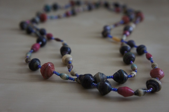 When you become a birth partner during the Birth Partner Push you will receive a necklace made from the women in the Shanti Uganda Women’s Income Generating Group. These paper bead necklaces are stunning. How do I know? Because I wear mine almost every day.