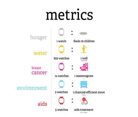 Supporting Charity Water, Keep a Child Alive, the American Cancer Society, One Day’s Wages, and the Adventure Project, with every watch sold a donation will be made to the cause you support.