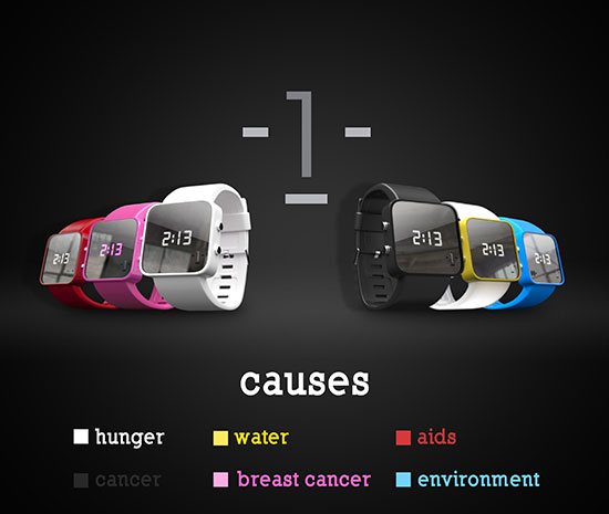 I love products with a purpose! There are many out there to choose from Toms, to Panda sunglasses to fair trade bracelets. Now, there is a new watch on the block that will launch on Monday on IndieGoGo called the 1: Face watch. Each watch color corresponds to a different cause. Pink supports breast cancer, red is for HIV/AIDS, white is for hunger, yellow is for water, blue is for the environment and black is for cancer.
