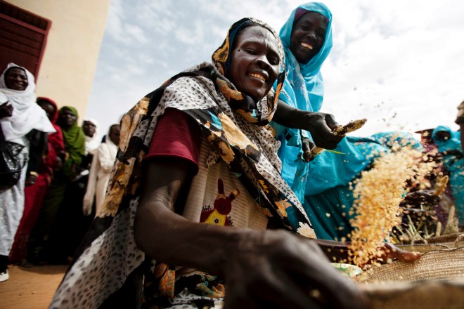 Sharga: Women in Sharga village, in North Darfur, prepare food during the visit of a delegation of ambassadors of the European Union countries into the SAFE centre.