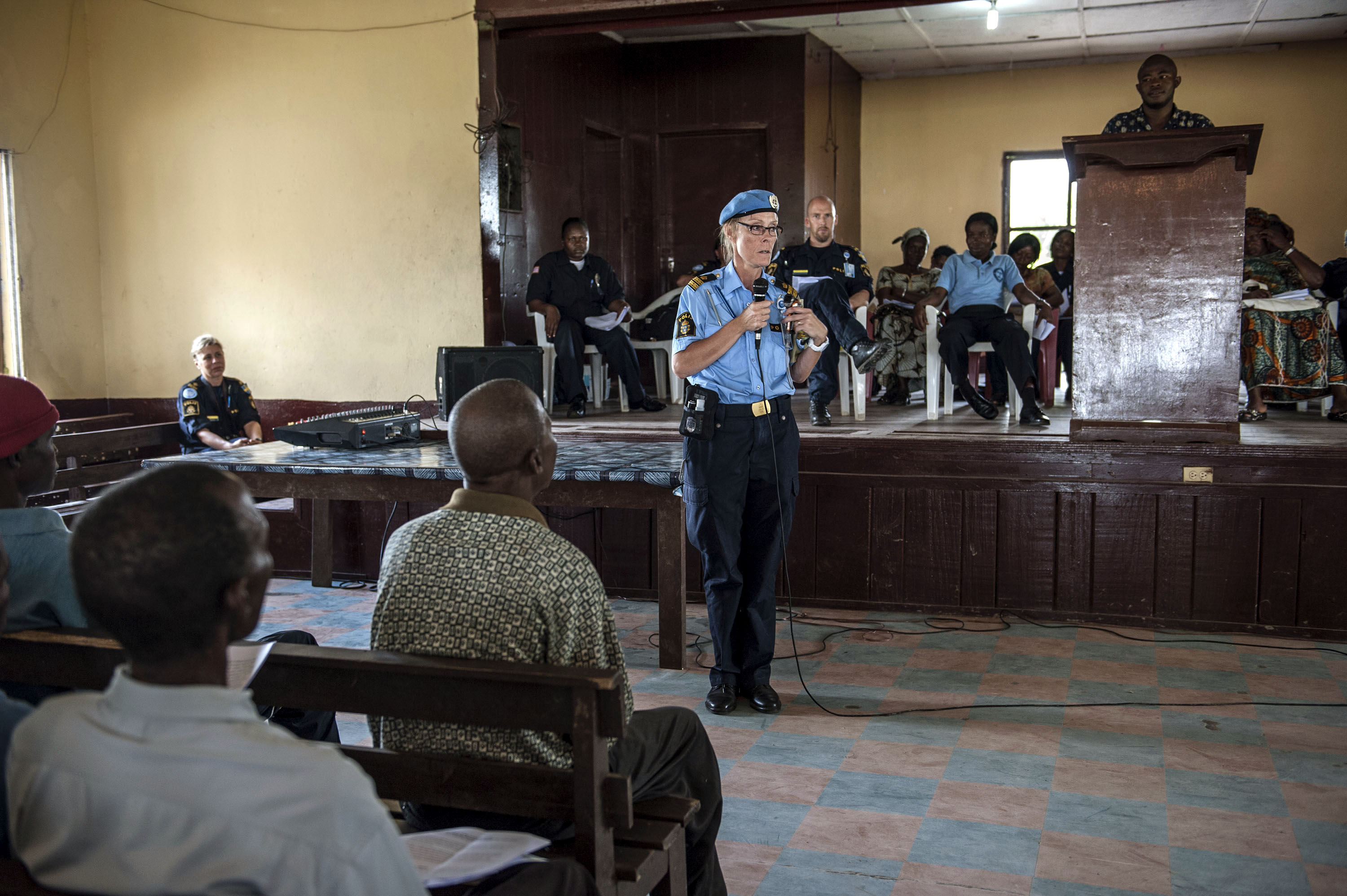 This week a UN Police (UNPOL) officer Helena Wallstrom discussed the importance of forensics and evidence collection in the investigation of rape and sexual abuse cases during a workshop on “Women’s Security in the Community”, jointly organized by UNPOL and the Liberia National Police, in Kakata, Liberia. Local citiznes listened to various informative speeches about rape reporting procedures at the BWI technical high school.