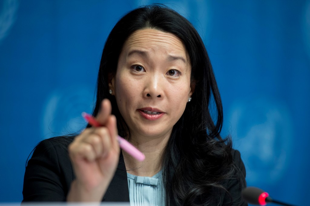Annemarie Hou, Director of Communications at the Joint UN Programme on AIDS and HIV (UNAIDS), speaks at a press conference in Geneva launching a new Results Report on HIV. UN Photo/Jean-Marc Ferré