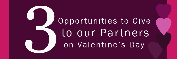Today is Valentine’s Day. It’s a great day for receiving gifts from our loved ones, but also a great chance to give as well. Three of our partners have created giving campaigns around Valentine’s Day that we think are practical, inexpensive ways to share the love.