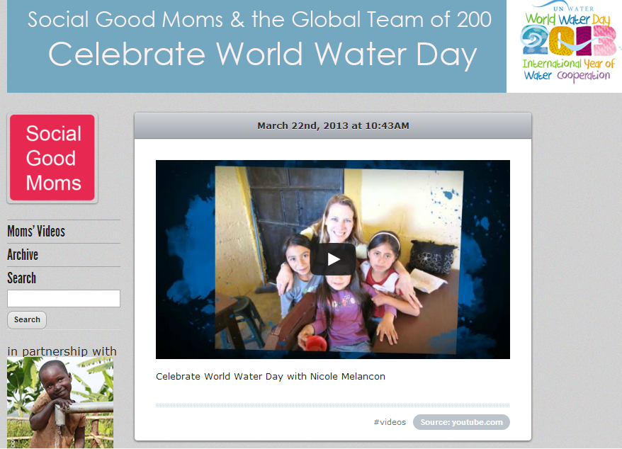 You can follow along with us today on our new microsite for World Water Day, worldwater13.tumblr.com, to see all of the posts and videos from Social Good Moms and Global Team of 200 members.