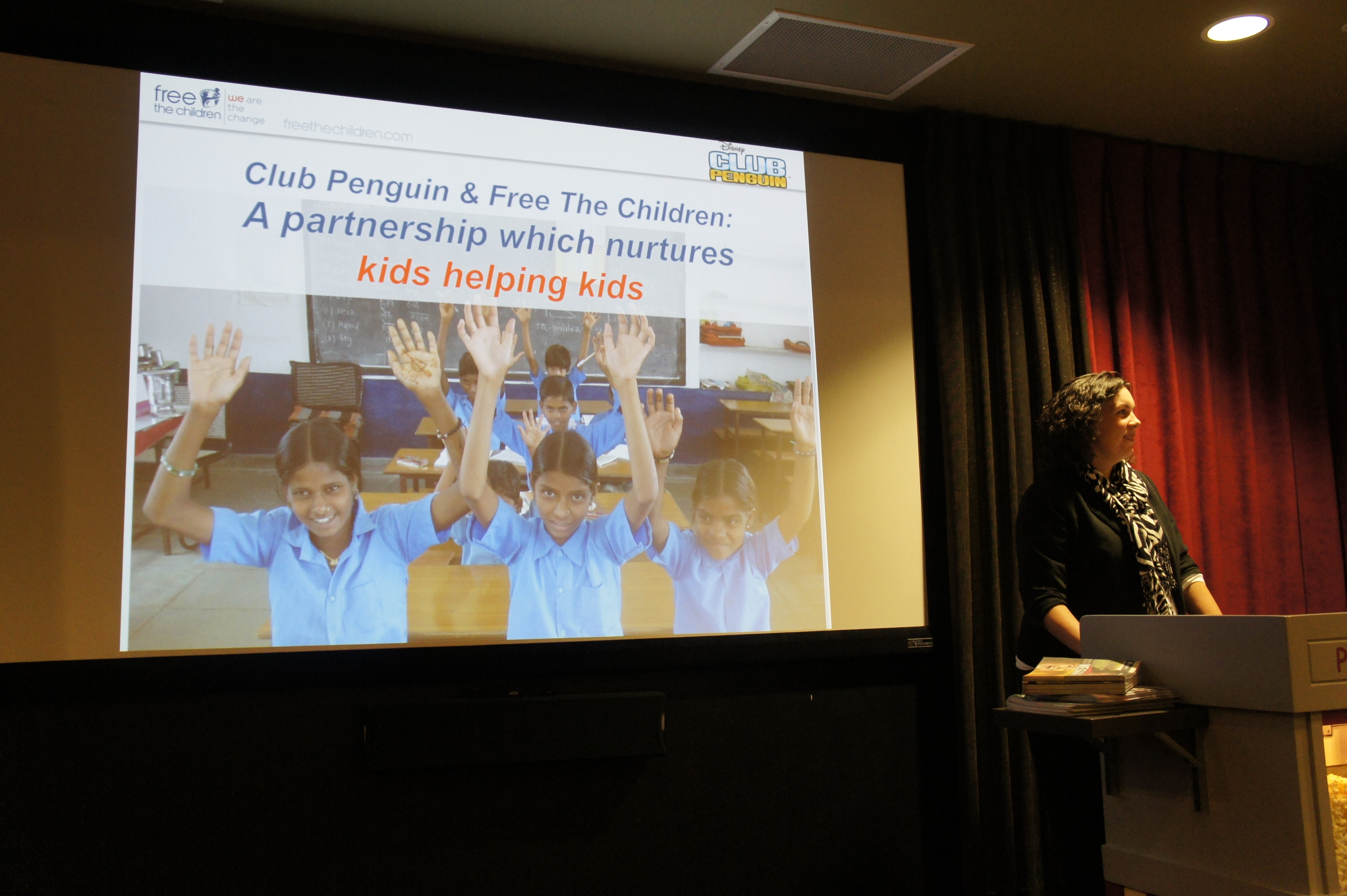 Erin Barton-Chéry, Director of Free the Children’s Development & International Operations, shared Club Penguin-funded projects that have made measurable differences in the lives of children in need. For example, right after the devastating earthquake in Haiti, Free the Children was able to build a brand-new school in a rural area of Haiti where a previous school had been completely destroyed. Barto-Chéry also noted that Club Penguin helps fund Free the Children’s sustainable Adopt a Village program with ongoing efforts in eight developing countries.