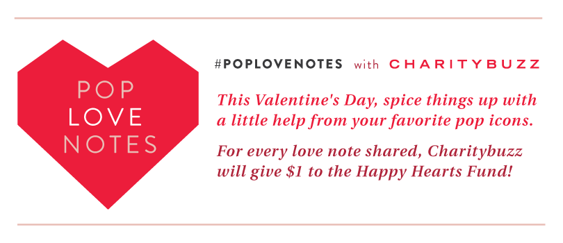 Charitybuzz has partnered with the Happy Hearts Fund, Petra Nemcova’s nonprofit dedicated to rebuilding schools and restoring hope and opportunity in the lives of children after natural disasters. When you share one of the #PopLoveNotes on Facebook Charitybuzz will donate $1 to the Happy Hearts Fund through the end of today, February 14.