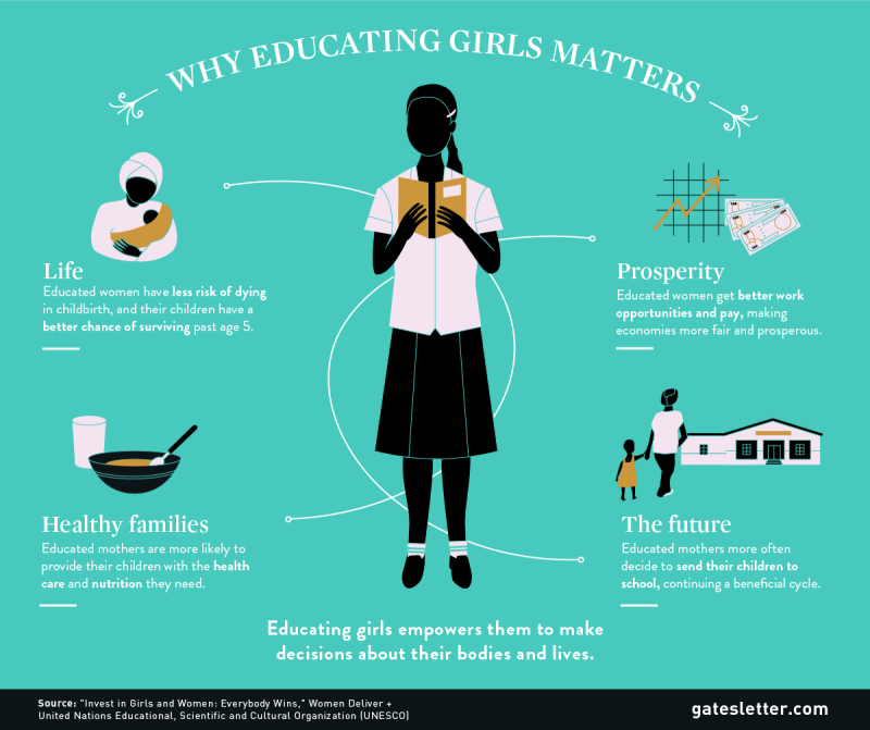 While more girls are getting an education around the world there are still too many girls who are left out of school. By 2030 that gender gap in education will sharply close. It is important to educate girls for the following reasons: