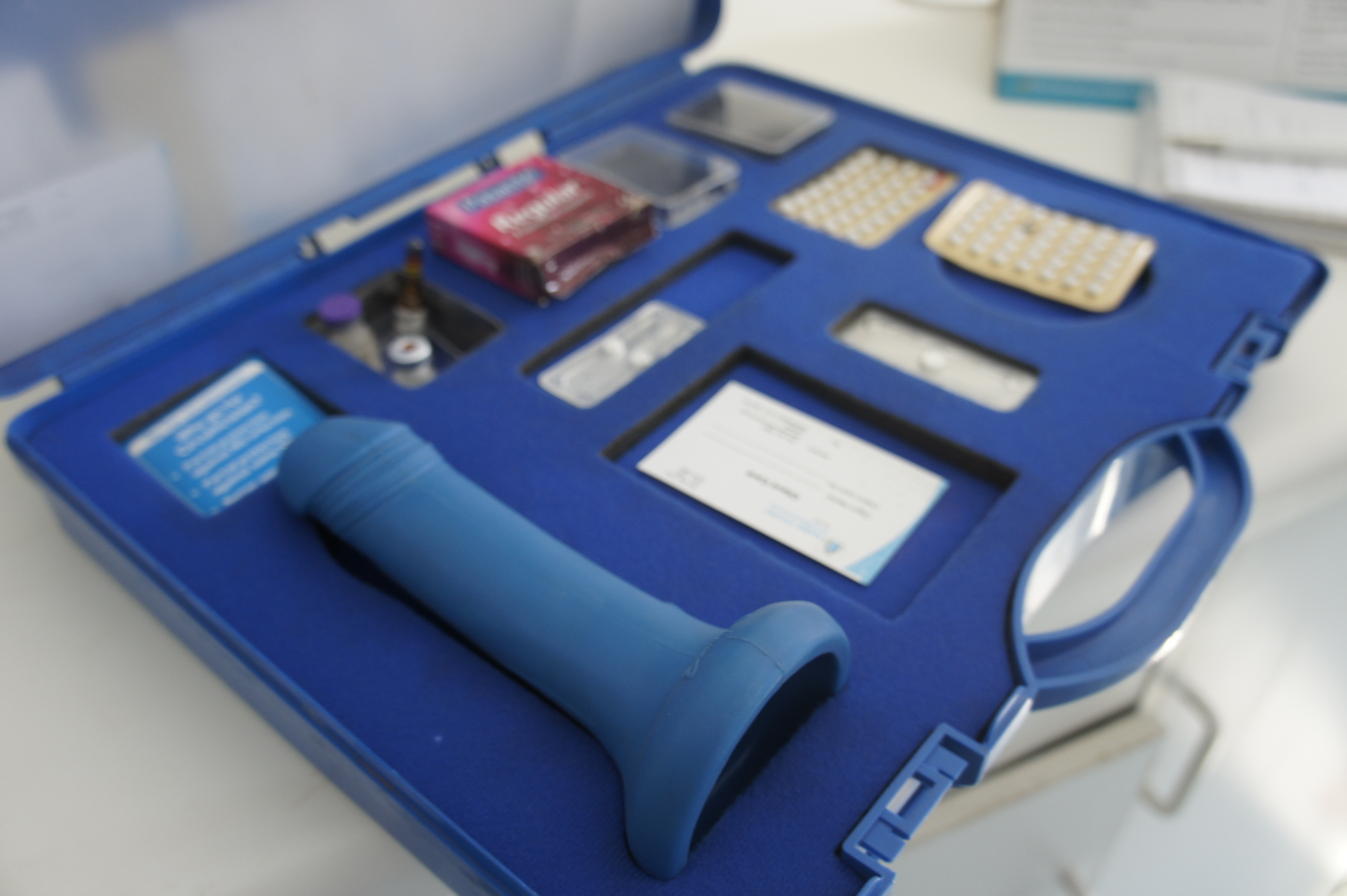 This is a family planning kit used at a Marie Stopes International Clinic in Johannesburg showing women their contraceptive options.This health worker at a Marie Stopes International clinic in Johannesburg demonstrated the female condom. She said many women don’t use them or like them, but female condoms have been useful for female sex workers who cannot rely on men to always use a condom or who refuse to do so.
