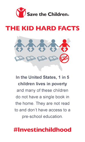 Visit SavetheChildren.org/Childhood to donate to early education for children in need. A $10 donation can help stock a child’s home library. Also, click over to connect with Save the Children on their many noble efforts here in the United States to help children.