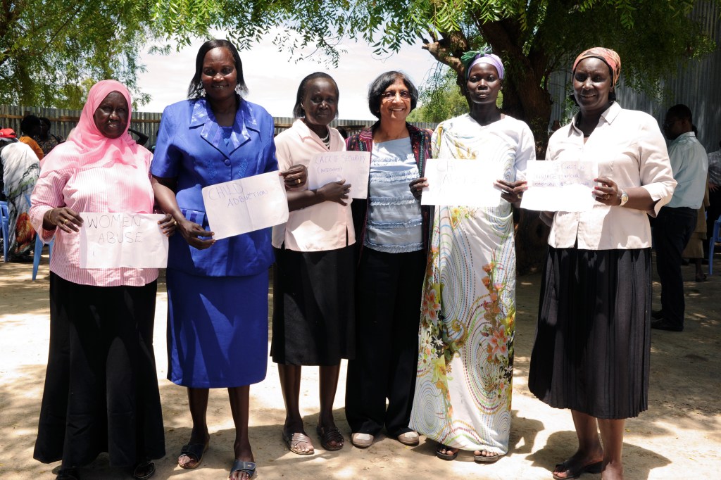 PHOTO: Navi Pillay (third from right), UN High Commissioner for Human Rights, poses for a group photo with South Sudanese women from Jonglei State who shared stories about their experiences with human rights violations, including violence, child abduction, and forced marriage. UN Photo/Elizabeth Murekio
