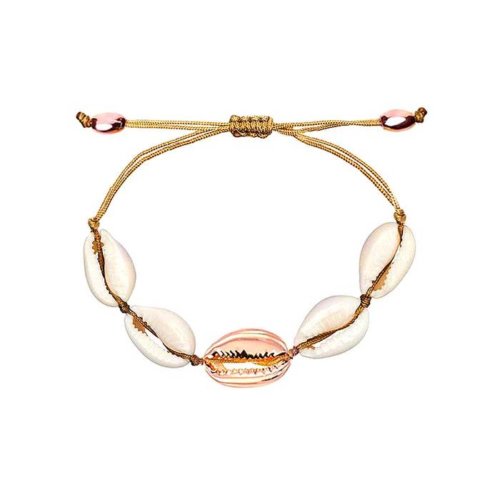 Natural Cowrie Shell Bracelet in Rose Gold: 10% goes to coral reef conservation.